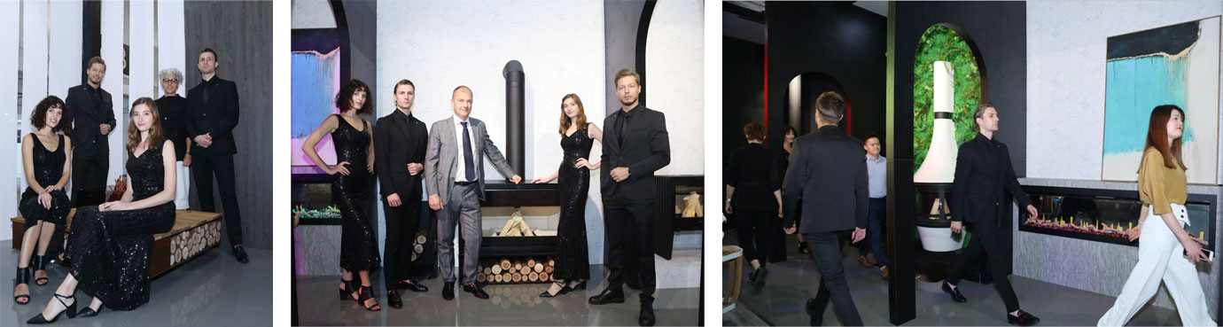 緊隨著?四位嘉賓的介紹,外籍模特從活動場地中間——亦是此次AK47的展品之一Zero圓形壁爐兩側(cè)相向而行,與各款產(chǎn)品互動演繹,以曼妙的身姿詮釋壁爐的藝術(shù)氣質(zhì),帶領(lǐng)來賓一一了解每款產(chǎn)品的精妙獨到之處。
